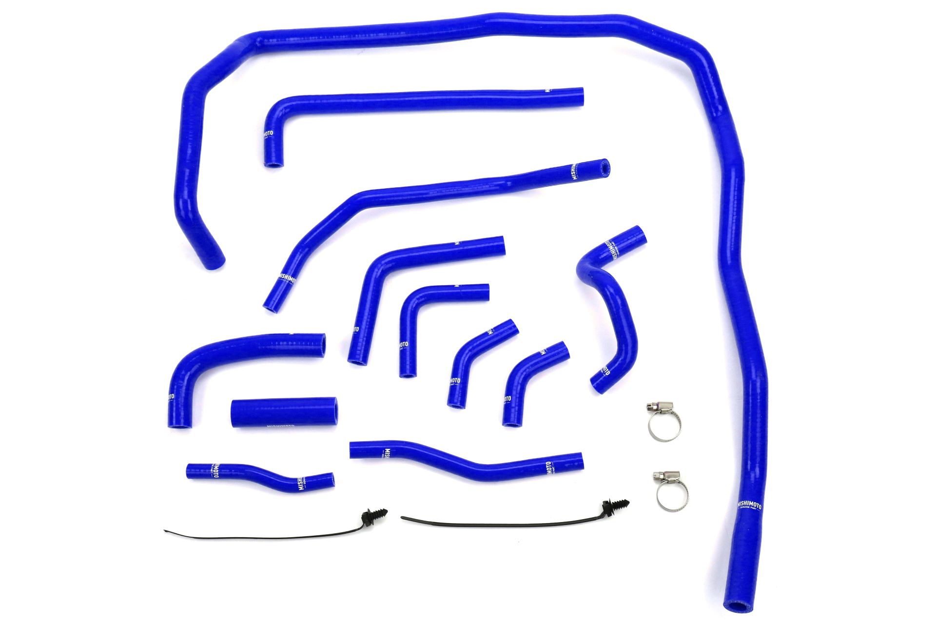 Ideal for those of you who really want to really want to seal up your coolant system within the hoses. This kit includes pretty much all the main coolant lines and hoses in the engine bay and offers the same cooling performance as the upper and lower radiator hoses with their strong multi-layer silicone construction. The little hoses especially are prone to cracking in the wintertime as they will harden and expand. And in many times, the OEM hoses will create a leak where the clamps hold the hoses down. As the hoses expand, it will actually stretch and either tear or crack where the clamps meet. Because multi-layer silicone construction is much stronger, you won’t have this issue with any of the ancillary hose kit options.