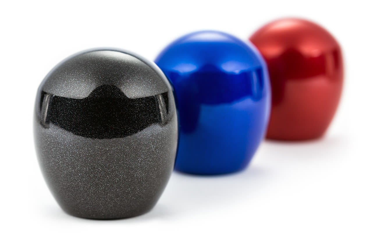 The metallic finish is achieved through a meticulous powder coating process which includes multiple stages of careful hand work. The shift knobs come off our cnc machines with a super smooth surface finish, then they are gently glass beaded to promote powder coating adhesion. A smooth coat of electrostatically charged powder is applied, then baked to cure the powder which creates a super smooth and durable finish!