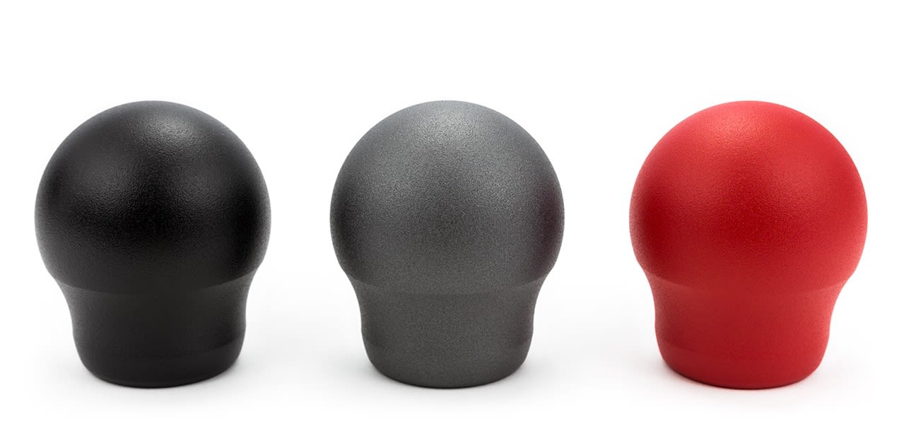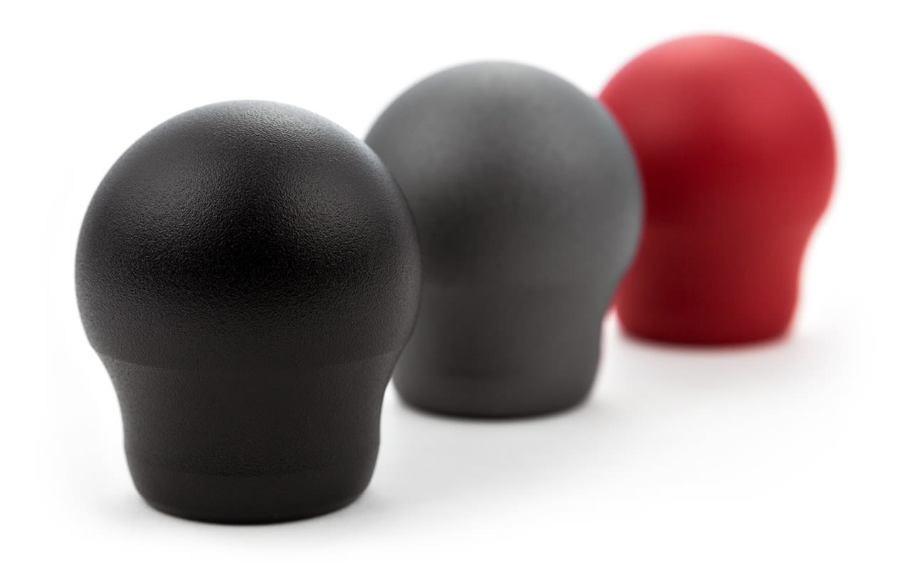 Enhanced grip and 500 grams of mass define the Contour's smooth and precise shifting experience. The grip ring is an intentional ergonomic undercut below the sphere that provides an ideal location for your fingers to sit, grip and shift. The Contour is powder coated with a slight texture for a confident grip and available in your choice of black, graphite or red. The Contour comes with an adapter that will seamlessly mount it on your car's shifter arm with OEM fit and finish.