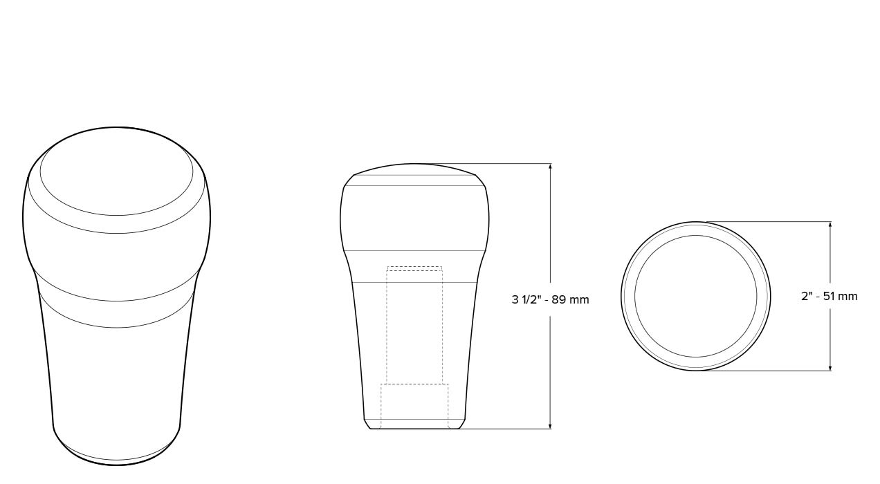 The Rondure was designed to compliment several shifting positions including side arm, full overhand and overhand shifting positions. The gently arched side profile is designed for the side arm shifting position. The profile fits the natural curvature of your hand and fingers as they wrap around the shift knob allowing you dictate direction and movement. The domed top surface is intended to compliment overhand shifting, giving you an ideal shape for confident shifting.