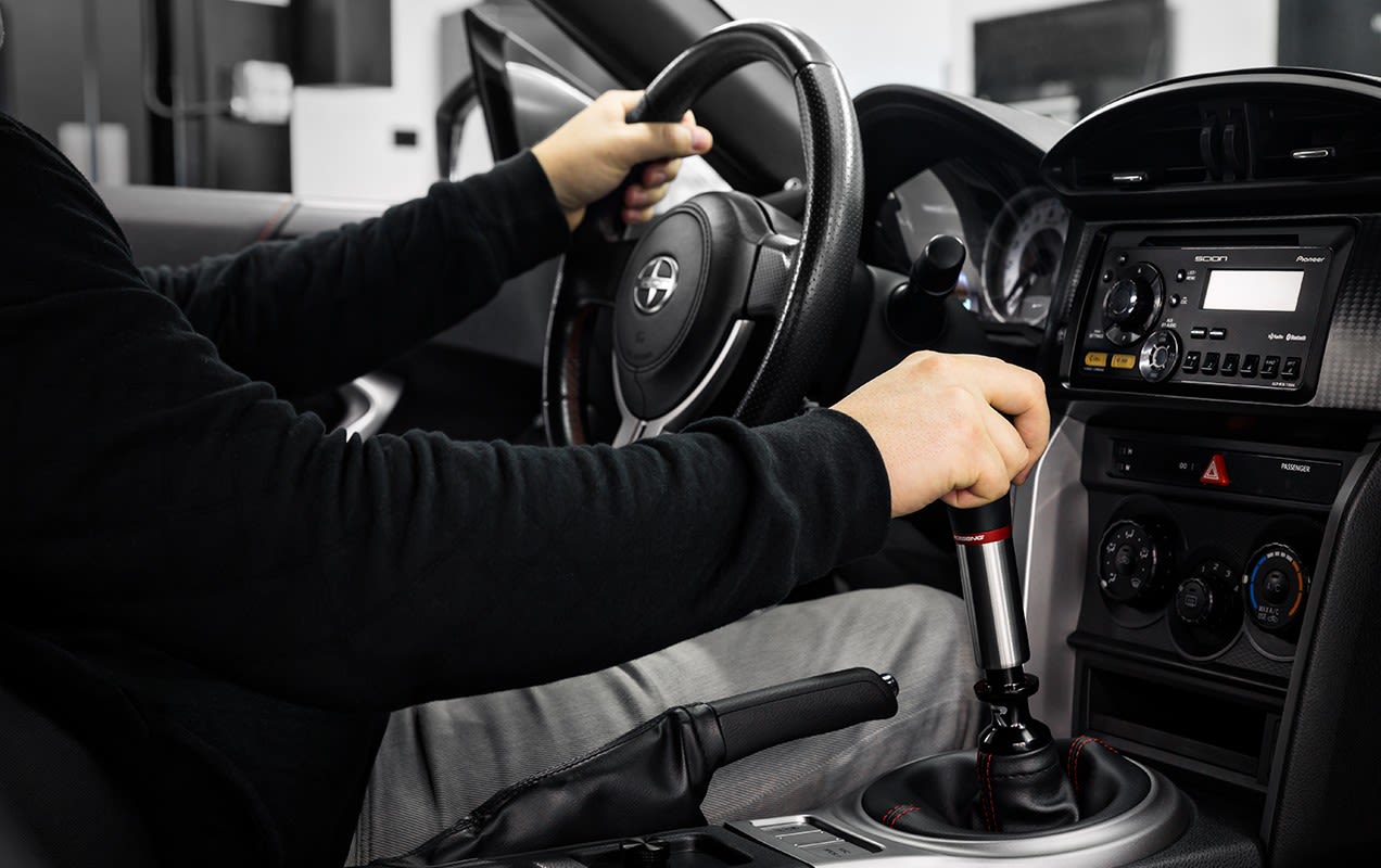 Each car has a different height relationship between the center console and the steering wheel. We suggest keeping the top of the shift knob between the steering wheel’s 4 or 5 o’clock position.