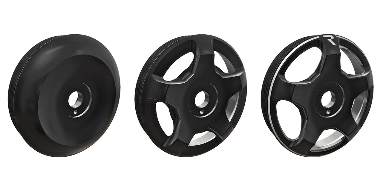 The Revo Crank weights 4.06 lbs. less than the OEM crank pulley and delivers an 80% reduction in rotating mass. The design keeps the mass as close as possible to the center of the pulley, requiring less torque to spin the pulleys and delivering more power to your wheels. You will feel improved throttle response and faster revs!