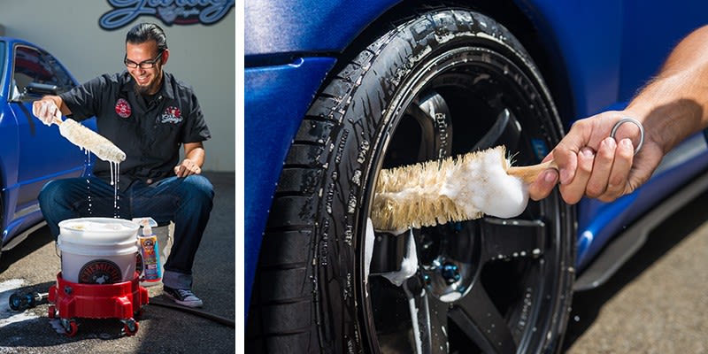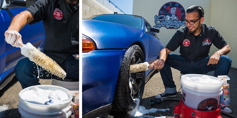 Use The Ferret Wheel Brush with premium Chemical Guys wheel detailing products, such as Diablo Wheel Gel, Signature Series Wheel Cleaner, and any Chemical Guys car wash soap. Use separate wheel-cleaning buckets, tools, chemicals, and towels to protect paintwork from swirls and scratches caused by abrasive brake dust.