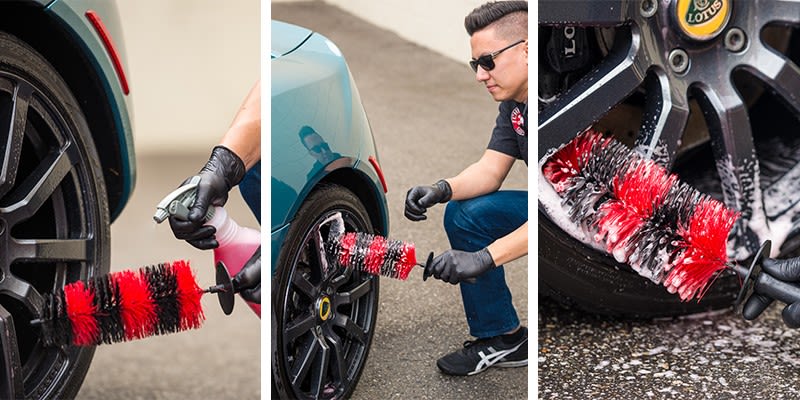 Just like with windows and glass, people hate cleaning wheels, rims, and tires. Wheels are never easy to clean because of their intricate designs, cramped spaces, and heavy contamination. The Chemical Guys Show Car Wheel & Rim Brush is the perfect tool for cleaning deep inside OEM and custom wheels. The red and black brush is tough on dirt, grime, and brake dust, yet gentle on painted, chrome, powder coated, and polished wheels. Many end up using old rags and brushes to clean wheels, and always end up with subpar results. The Show Car Wheel & Rim Brush features an extra-long and fluffy profile, which is perfect for scrubbing between spokes and deep inside the barrel of alloy wheels for total clean and bright shine. Easily bend and shape the flexible brush rod to fit around brake calipers, into tight spaces, and behind wheel spokes. The long brush cleans all the way to the back of any wheel, and the soft rubber tip prevents scratching damage along the way. The brush also protects the user: the soft rubberized handle and knuckle guard protect hands around spokes and sharp dust shields. Use the Show Car Wheel & Rim Brush to clean deep inside wheels, exhaust tips, engine bays, and more. The soft bristles gently scrub and lift dirt and grime from wheels for a scratch-free shine. Easily clean away brake dust, dirt, oil, road grime, and more with the Show Car Wheel & Rim Brush. For best results, pair your Show Car Wheel & Rim Brush with a Chemical Guys wheel cleaner and bucket of water with Chemical Guys car wash soap to clean wheels to a like-new condition. Choose the Chemical Guys Show Car Wheel & Rim Brush for deep wheel cleaning and detailing.