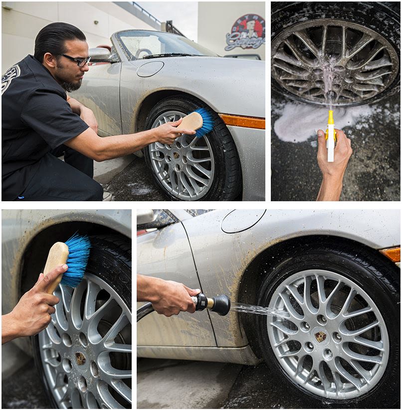 Diablo Gel can be applied with a brush or sprayed directly on the wheel. Diablo Gel is non-acid based, non-caustic based, water-based extra slippery gel that safely cleans all wheels. Diablo Gel works on painted wheels, clear-coated, polished, chrome or anodized wheels. It is 100% pH balanced and neutral so it's safe for delicate wheels. A single glance at Diablo Gel clearly shows how it holds the oxygen pockets inside of the products. Diablo Gel's unique extra-slippery formulation lifts brake dust, dirt and contaminates away from any surface holding it in complete suspension so it can be safely and easily rinsed off without staining any surface. Premium natural fragrance and 100% biodegradable composition.