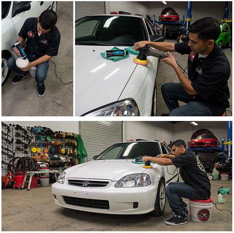 Auto detailing is mostly a maintenance activity. All the proper wash methods, tools, chemicals, sealants, and waxes are used to reduce the chances of scratching paint, maintain the integrity and look of automotive materials, and hide minor scratches, swirls, and imperfections. The only part of detailing that will actually repair paint, remove scratches, and fix problems is machine polishing. Polishing removes the top layers of “dead” paint to level the surface and reveal a flat surface with lustrous deep reflection once again. Picking the right combination of machine, pad, and chemical is crucial to getting the best results without taking off too much paint. Chemical Guys VSS Scratch & Swirl Remover is the perfect one-step polish that produces exceptional results, and saves time.