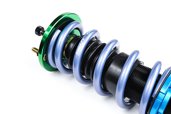 The new "Ultra" Double Digressive Piston (UDDP) with revised shim stacks, a unique feature on our 510 dampers, allows for tremendous amounts of low speed force that helps with driver inputs such as dive, pitch, and roll. Furthermore, the damper force greatly tapers off to provide the driver with an internal "blow off" effect which helps with large impacts on track, keeping the vehicle stable after hitting curbing at high speeds. After countless hours on the shock dyno and testing on the track, we are proud to offer high performance coilovers that rival many high-end European shocks.