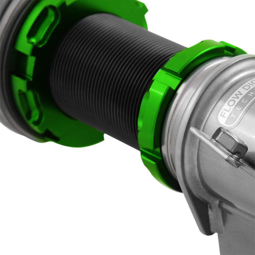 Flow Digressive piston technology™ allows for stiff low-speed compression/rebound force. This gives more control of driver inputs such as roll, dive, and squat. However, at fast stroke speeds (i.e. high speed bumps) the suspension becomes supple in response to bumps and irregularities in the road for maximum control.