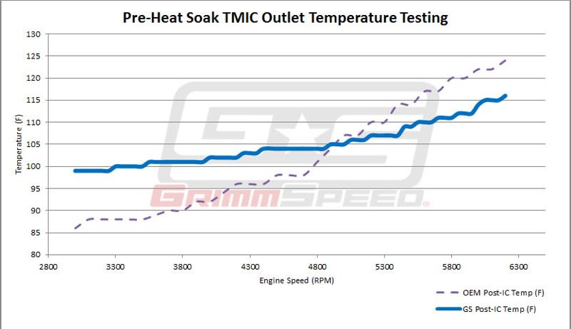 So, you probably already know that you want an intercooler with maximum cooling and minimum restriction, but when it comes to selecting the right ‘man for the job’, we think it’s important to understand why. As air is pressurized by your turbo, it heats up, not because of the heat of the turbocharger, but because when they’re compressed, the atoms in the air are forced closer together and as a result, move faster and have more energy. That energy manifests itself as heat. The more heat we can remove from the system, the denser the air becomes and that’s what helps eliminate pre-detonation, or ‘knock’, allowing for increased output from your system. Your OEM TMIC does just fine at stock boost under normal use, but as soon as you start putting some real heat into it with higher boost or harder use, it heat-soaks beyond recovery.