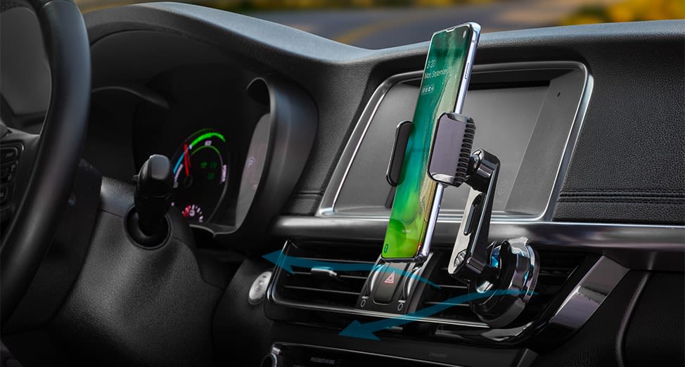 Add some scent to your vent with this dual-purpose mount that securely holds your phone and freshens the air in your car. The open design allows free airflow from your car vent and releases fragrance from the replaceable cartridge.