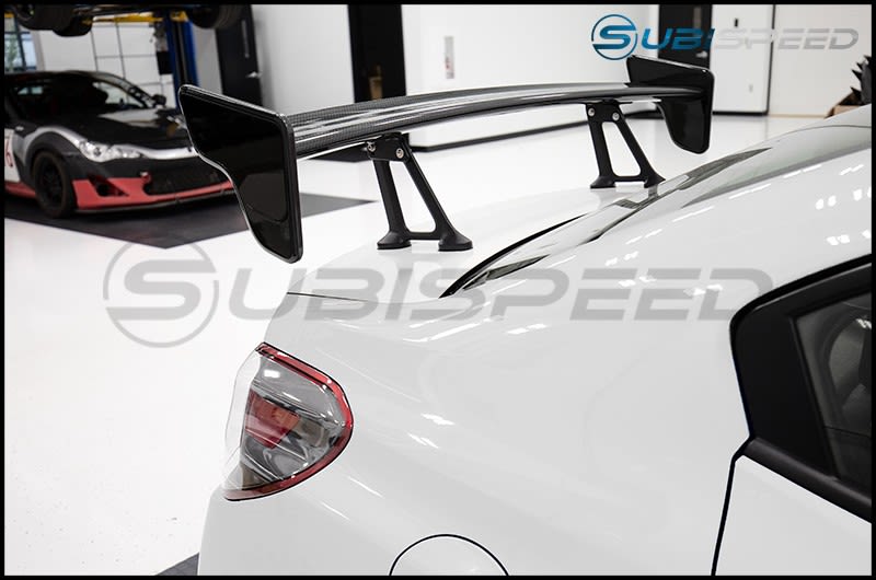 Share in the excitement of the latest addition to Subaru's performance line of vehicles with this OLM carbon fiber wing, a standout in the US marketplace. Featuring the same spoiler as the S208 but with distinct end plate inserts, it offers a unique touch to your vehicle's appearance. With gloss black ends and blank end plates, you have the opportunity to customize with decals for a truly unique look. Measuring approximately 53" wide and 7.25" deep, this wing is designed to make a statement. It comes complete with mounting hardware and a template for installation, though drilling is required for fitting.